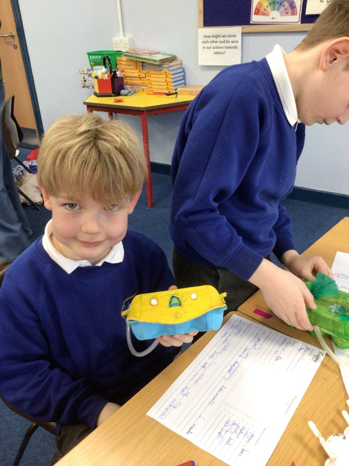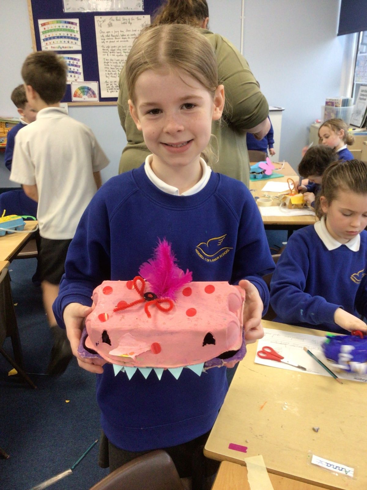 In Design and Technology this term, Year 3 have been busy engineers and have explored how pneumatic systems work. The children designed and made their own pneumatic toys using egg boxes, balloons and clear tubing, learning how air can be used to create movement. They carefully investigated how the mechanism worked before assembling their final products, showing great problem-solving skills and resilience. The children thoughtfully considered the aesthetics of their toys, making creative design choices to ensure their finished products were both functional and visually appealing.